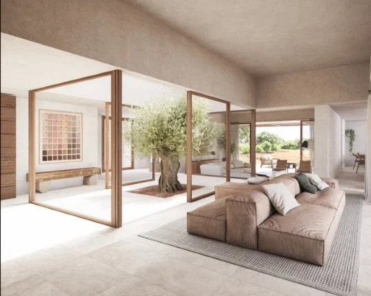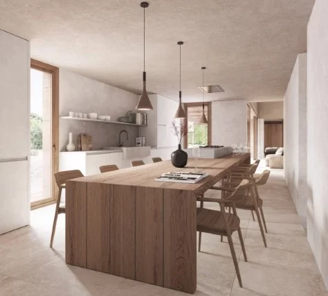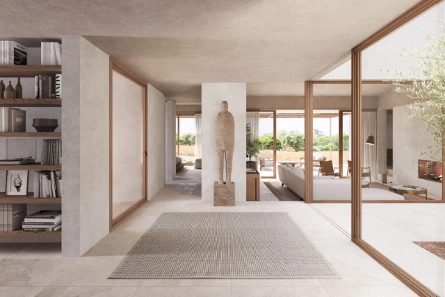 The house merges wonderfully with the landscape to harmonise with the natural environment. Spread over 255 m2, it is almost entirely on the ground floor, harnessing the interplay of light and transparency. Comprising four distinct volumes and an internal courtyard which illuminates the central space, creating panoramic vistas across all living spaces.