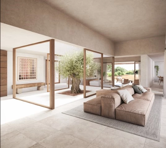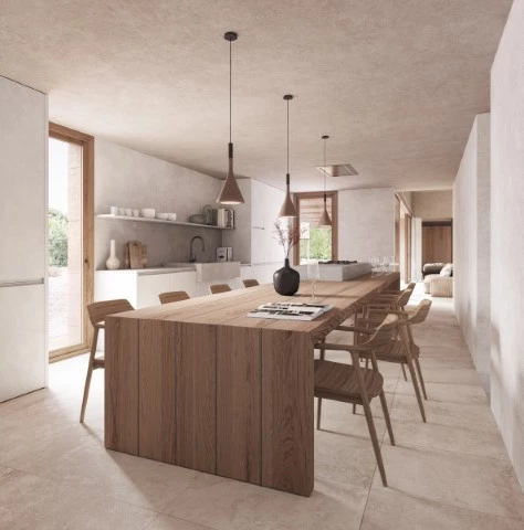 The house merges wonderfully with the landscape to harmonise with the natural environment. Spread over 255 m2, it is almost entirely on the ground floor, harnessing the interplay of light and transparency. Comprising four distinct volumes and an internal courtyard which illuminates the central space, creating panoramic vistas across all living spaces.