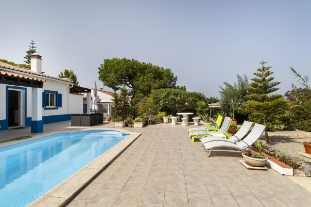 Set in a peaceful residential area of Aljezur, this 3-bedroom villa stands out for its traditional Algarvian architecture, with whitewashed walls and blue accents that reflect the charm of the region’s heritage.