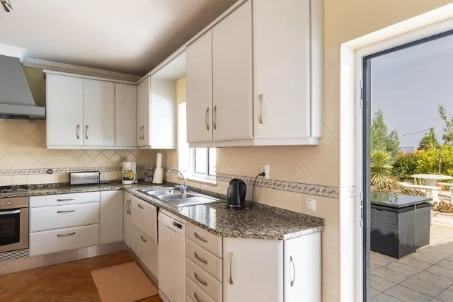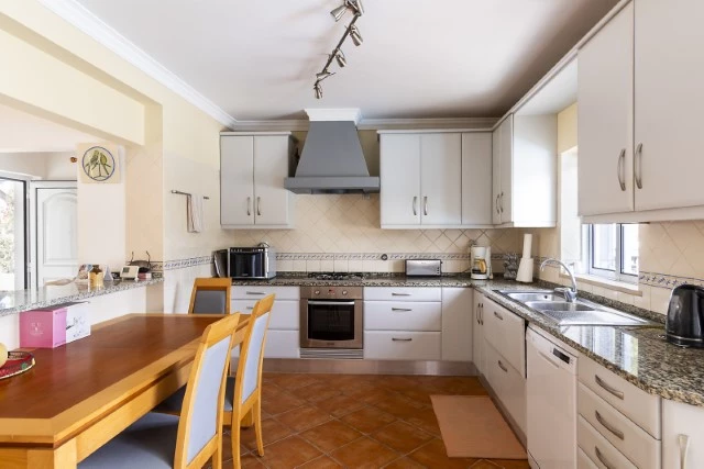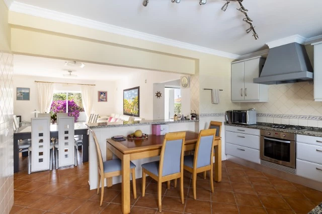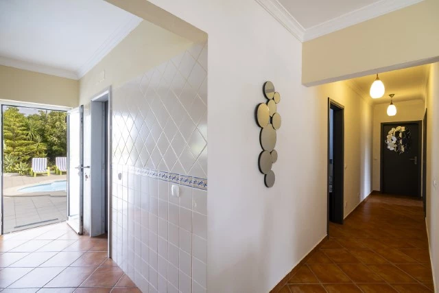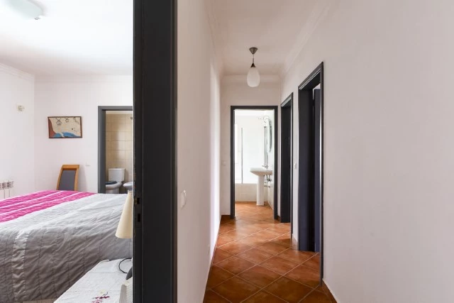 Outside, the villa offers a complete leisure area: a swimming pool with sun loungers, a barbecue, and a dedicated space for outdoor dining designed to make the most of the Algarve’s sunny days and mild evenings. It also includes covered parking.